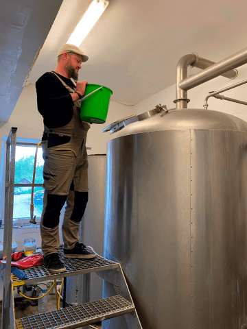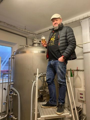 Takže mě žena klasicky vyhodila z kuchyně do garáže a začal nekončící proces pozvolnýho vylepšování vybavení, vychytávání postupů, surovin, experimentování, ladění a samozřejmě ochutnávání. No a protože moje piva lidem chutnají a já na ně pořád myslím a nechci si je sobecky nechávat jen pro sebe, tak jsem začal lítat. Díky klukům v pivovaru z pivovaru Theodor a Pivovar Tišnov, že mi v tom pomáhají. No a proč to dělám? Právě kvůli pivu. No a proč tam mám to kolo? Protože je to moje druhá vášeň, jezdím na kole kvůli pivu, abych ho mohl ochutnávat ještě víc..
